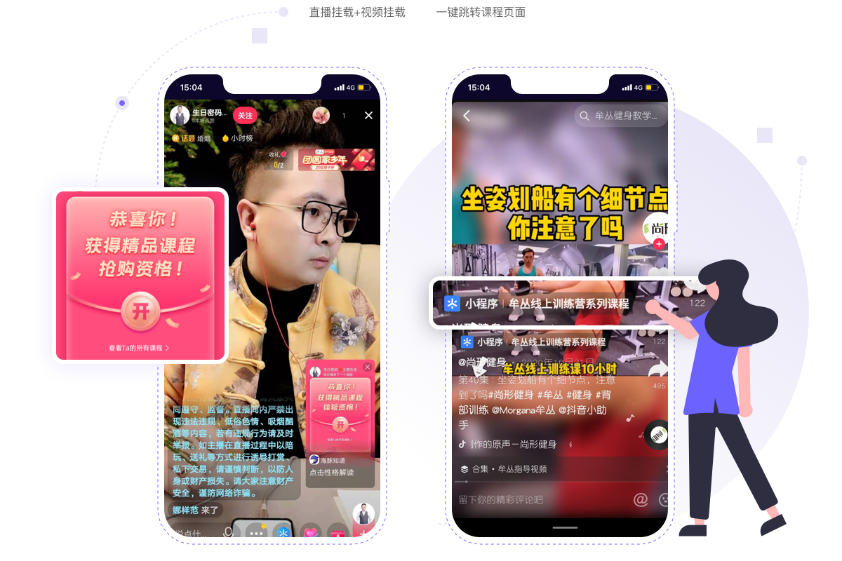作为抖音创作者服务平台认证品牌的海豚知道,发布短视频、开直播时都可以挂载您的课程入口,粉丝点击即可支付、观看、推广。