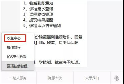 当达人的课程成交一份新的订单时,服务平台将在微信端实时推送“收益到账通知”,内含“收益金额”、“收益来源”、“到账时间”,让达人们及时知道每笔收益的来源去向。