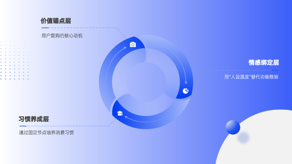 黄金法则的底层逻辑,正是由“复购三角模型”支撑的——当价值锚点、习惯养成和情感绑定形成闭环,用户就会像上了发条一样主动复购。接下来我们来拆解这三层: